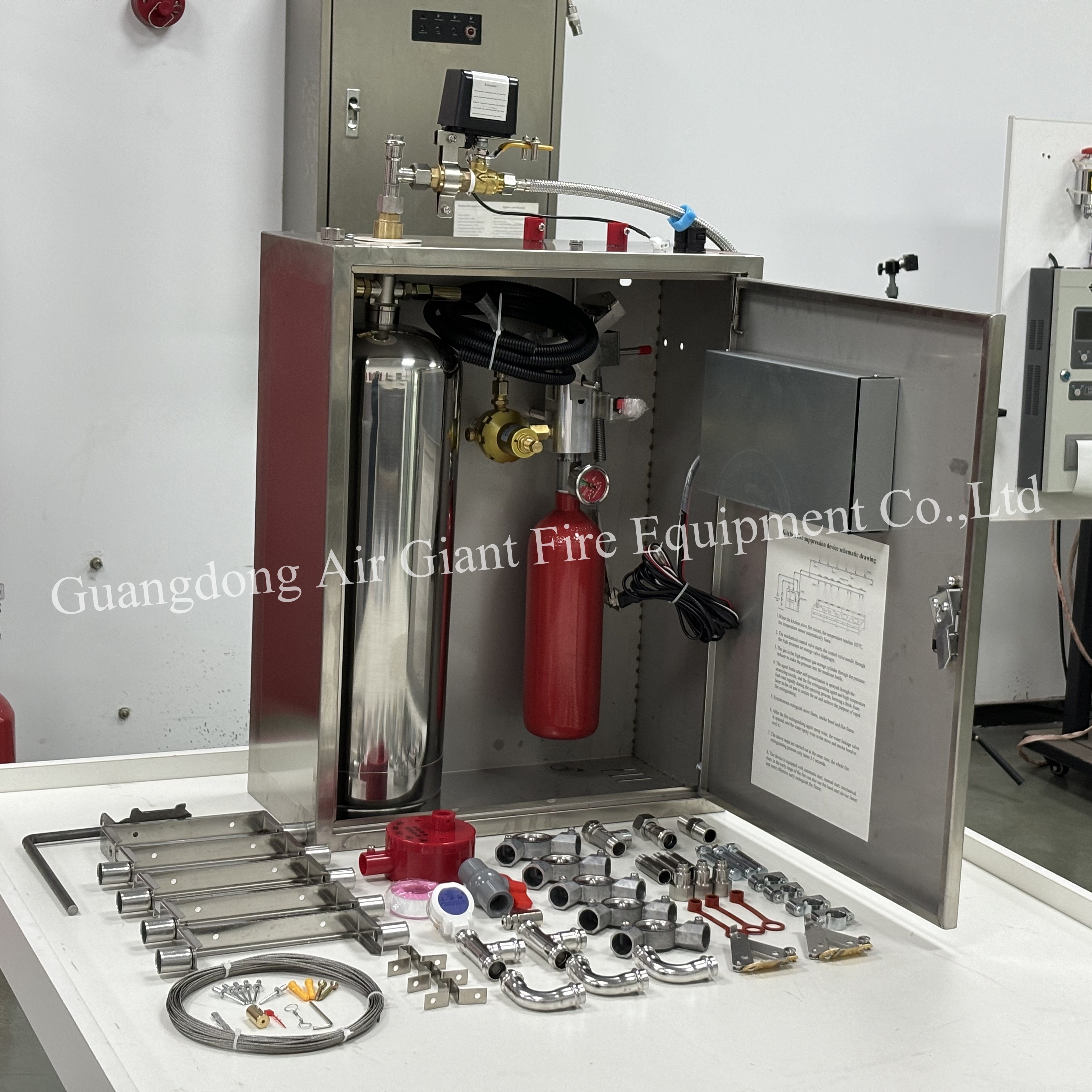 Este dispositivo pode atingir a monitorização, detecção e ativação automáticas 24 horas por dia, com um curto tempo de pulverização de agente extintor de incêndio e extinção rápida em 5 segundos.Durante a extinção de incêndiosPara evitar a corrosão, todas as matérias-primas são feitas de aço inoxidável ou cobre.Quando instalado e utilizadoA instalação do número e da posição dos bicos é flexível e satisfaz os requisitos das especificações.O projeto e a instalação no local são realizados de acordo com o número de furos de fogãoAgente extintor ecológico, fácil de limpar e conveniente para limpeza diária.O dispositivo de extinção de incêndio está instalado nas paredes circundantes da zona de protecção, que não ocupa o espaço do solo da zona de protecção.